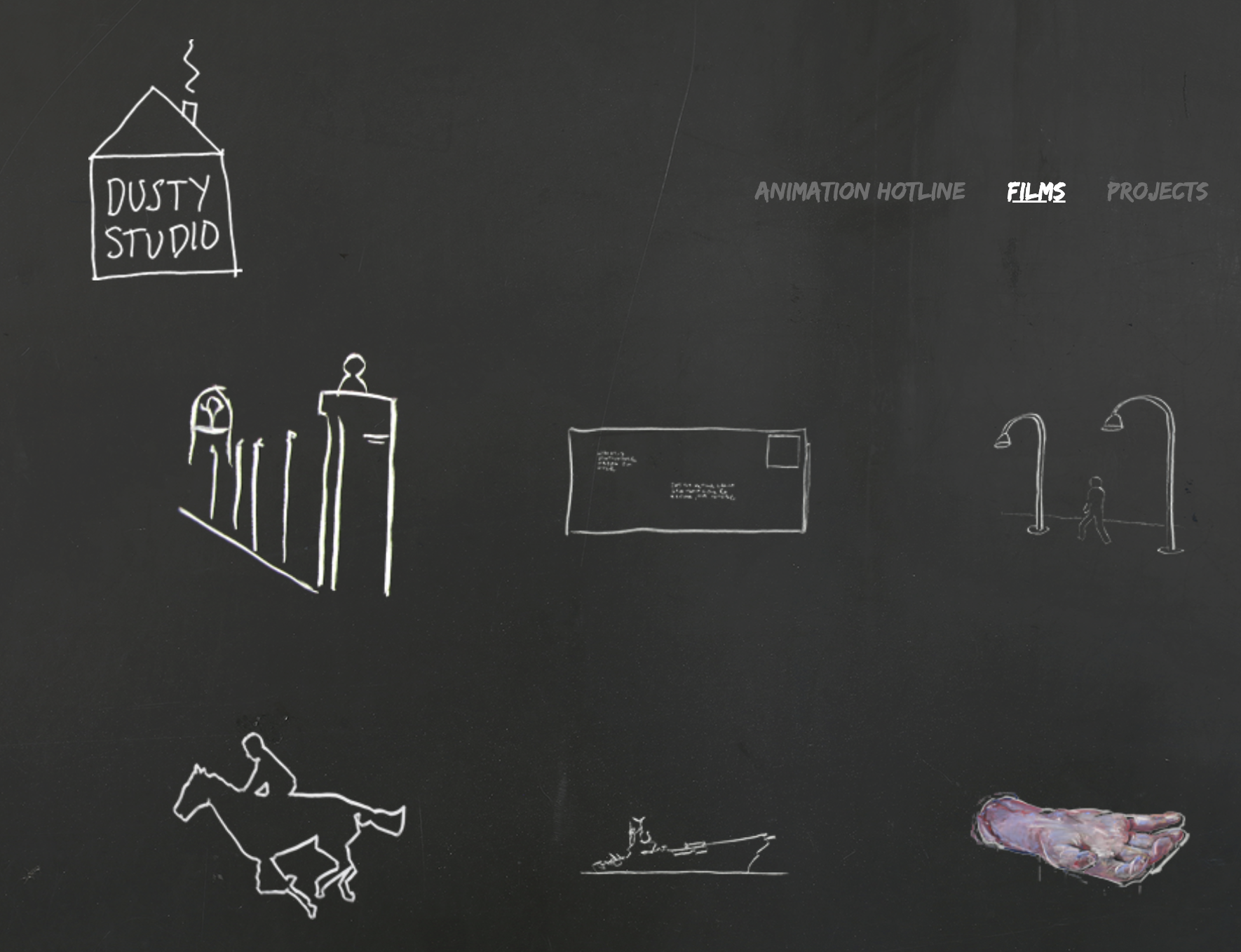 The website of Dustin Grella, an animator known for his detailed chalk animations.